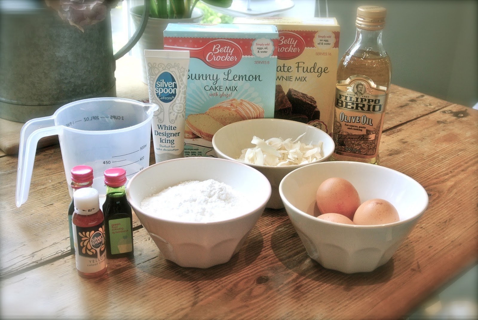 Lemon Cake Mix (or your favourite cake recipe with lemon/yellow colouring)