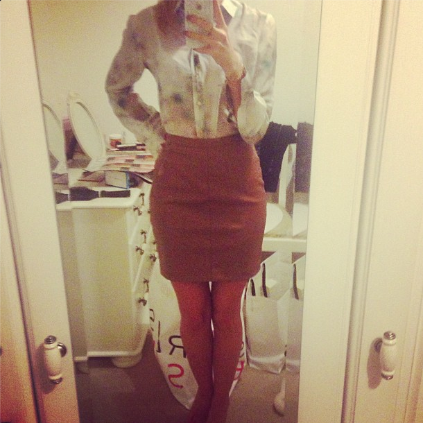 { Best Buys from Reiss; Cognac Leather Skirt and Silk Top. I paid £20 for both, RRP would be over £300 for both. Image from my Instagram, @JosieLDN }