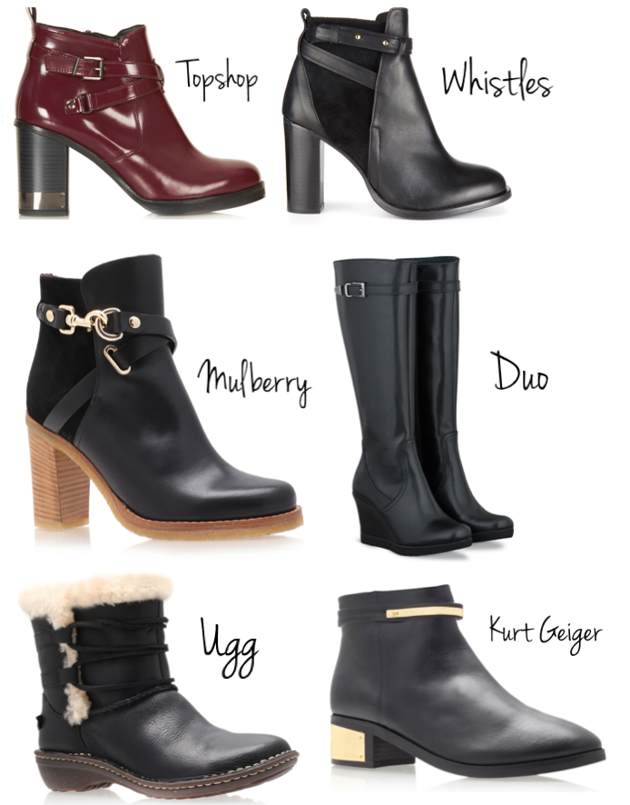 { 1. All Mine Metal Trim Boots – Topshop, 2. Canter High Jodphur Boots – Whistles, 3. Dorset Hi Bootie – Mulberry, 4. Compton Black Fitted Knee High Boots – Duo, 5. Rianne – UGG, 6. Vice Boots – KG Kurt Geiger }