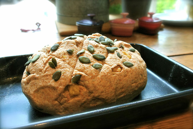 Living in London, the leaves are only just starting to change, but that won’t stop me already shifting towards the warm comforting recipes which I save for this time of year. This recipe produces a doughy, moist textured loaf peppered with Pumpkin and Walnut pieces, as well as a selection of other seeds, resulting in a rich and earthy flavour.