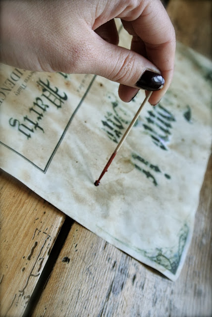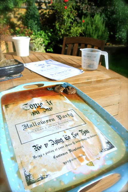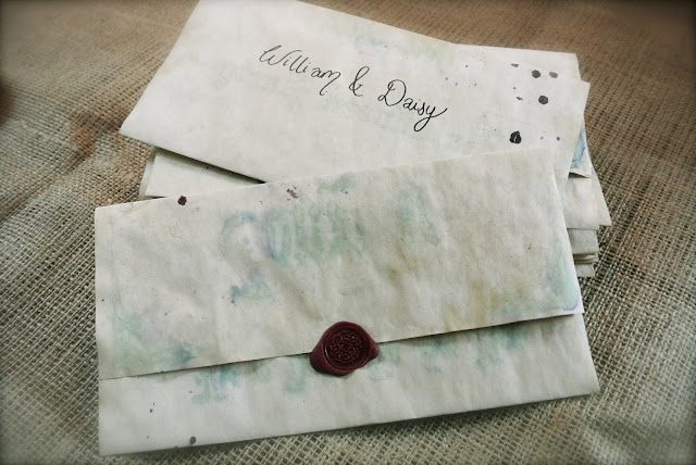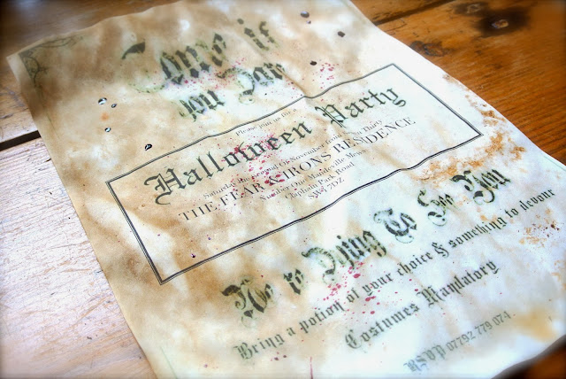 After printing, I tea stained the invites (primary school art lessons, who knew they would come in so handy?!) and left them to dry outside.