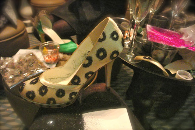 We were given one hour to practise, and then create a shoe based on our alter ego. Some girls created flamboyant designs, inspired by ‘Rihanna at the Carnival’ or ‘City Girl becomes Country Bumpkin’, where as others chose more classic designs – including myself! My alter ego has to be my wild side, so I chose a leopard print design which I created using black glitter.