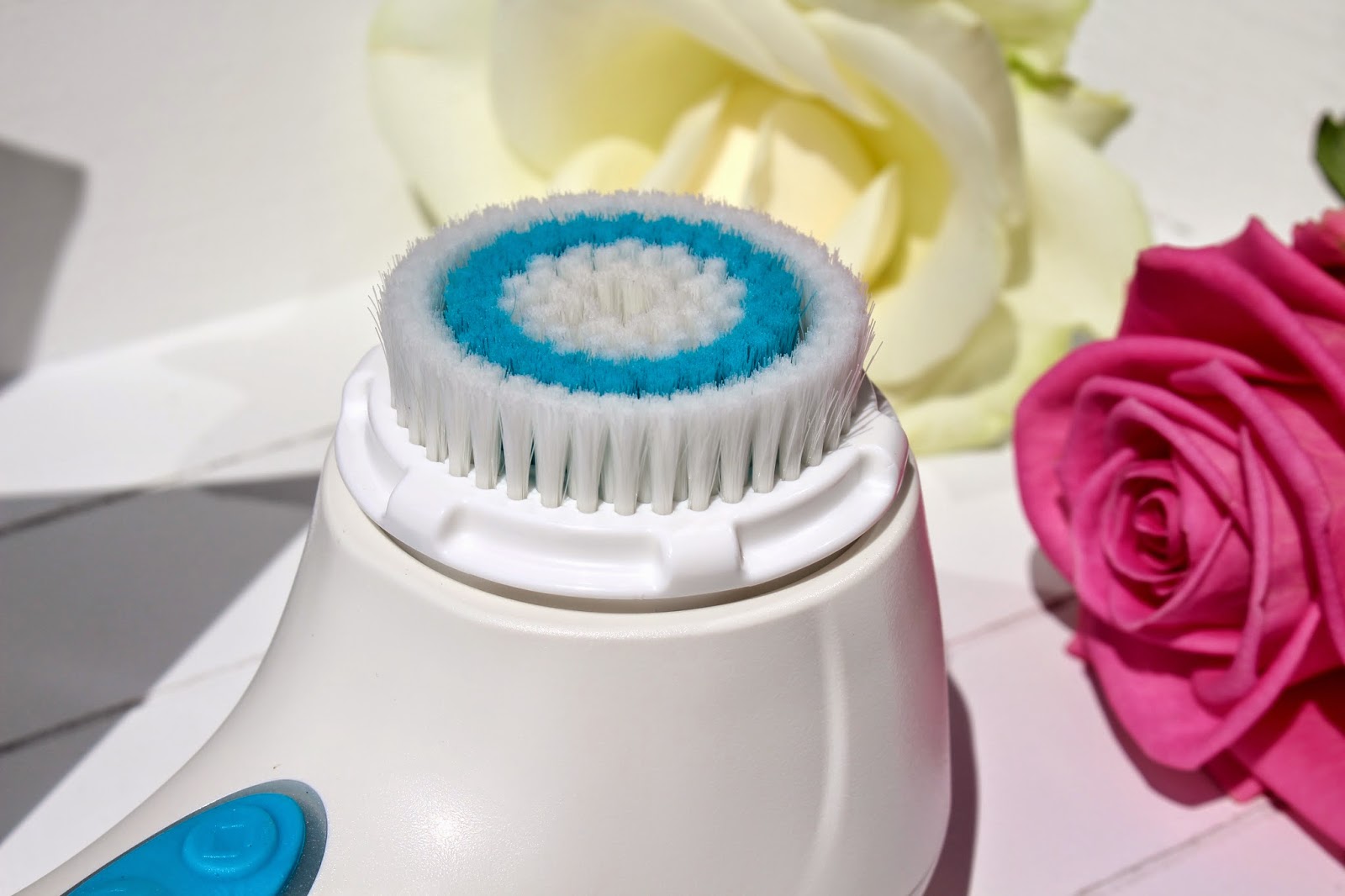 The bristles on the cleanser head are soft and fine, which means it isn’t harsh at all on sensitive skin. The sensation is quite unusual, and takes a little getting used to – I had expected it to be rough but it isn’t at all. The vibrations help to improve circulation to the skin, while the bristles deep clean and also gently exfoliate. After every use I wash the brush head under warm water and store it in the handy travel case that it comes with.