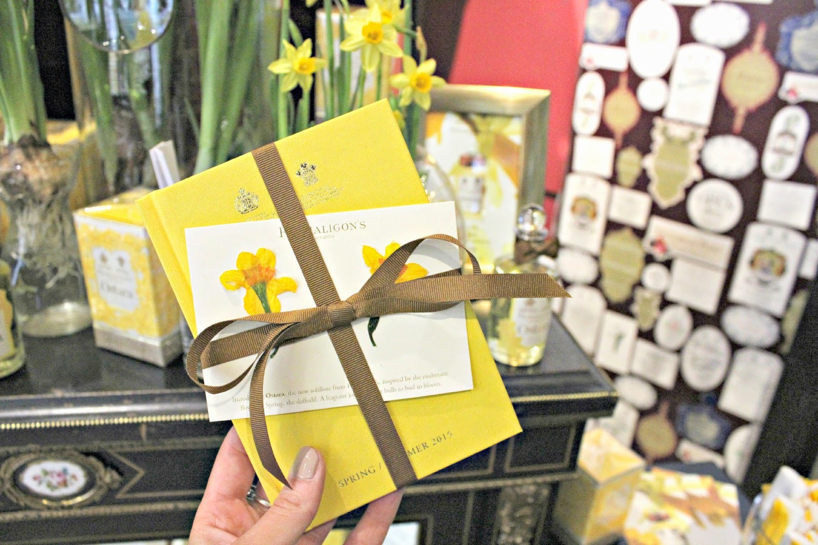 My final stop was Penhaligons, and I was drawn in by their beautiful window display (first image of this post) themed around daffodils for their new Ostara fragrance launch. The delicate fragrance is sure to be a favourite for Mother’s day, with notes of Hyacinth, Hawthorn and Cyclamen and a warmth created by beeswax, white wood and Vanilla. The store is infused with the scents of the brands most popular fragrances which you can sample to decide which one is best for you, or Mum! Upon purchase of Ostara, the store at the Royal Exchange is also gifting this beautiful notepad, with pressed scented flowers – a lovely additional gift for Mothers Day!