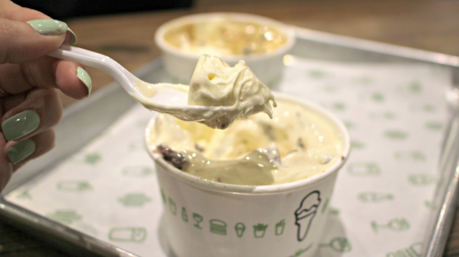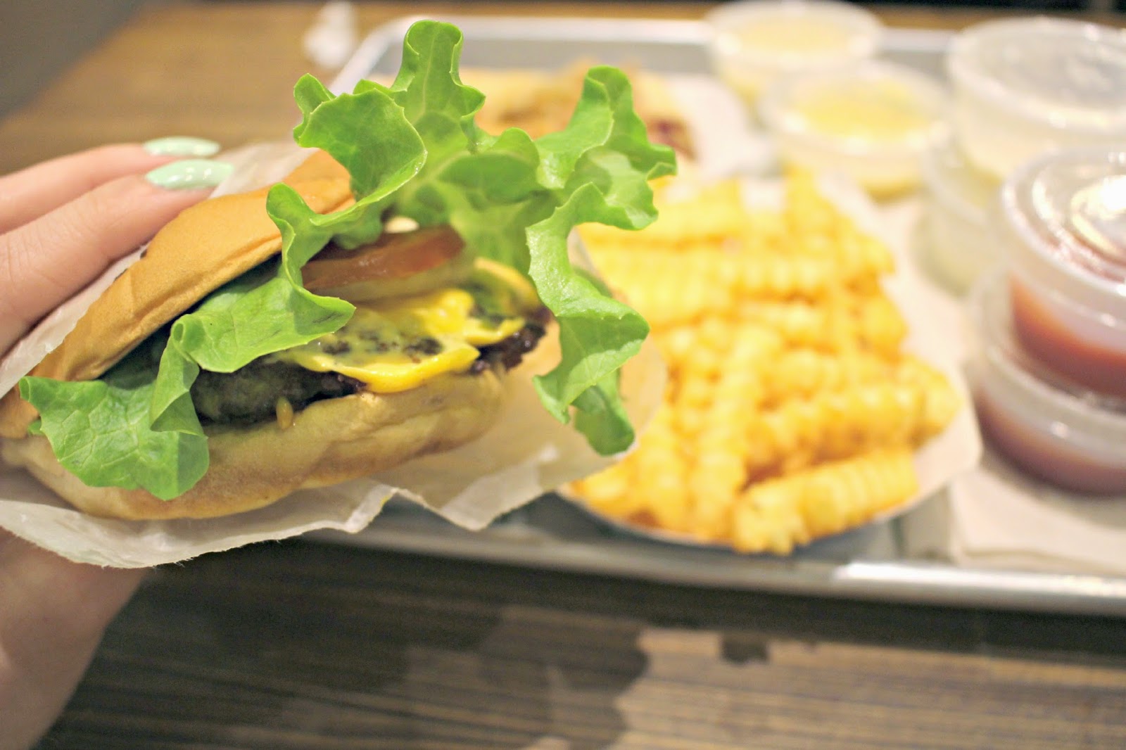 … Living for my Cheat Meal! After a super healthy week, I couldn’t resist the temptations of Shake Shack after work on Friday. In the heart of Covent Garden is the best gourmet burger takeout in town. Just like fast food restaurants you order at the counter from their selection of burgers and hot dogs before taking your tray to a table to devour! I went for the classic Shake Shack burger with extra cheese as well as cheesy crinkle cut chips, sorry, fries, (hey, go hard or go home!) which were soon devoured – as you’d expect from an American Burger chain, it was everything a burger should be – so good you want to order more but knowing that I had a Shaksbury Concrete on the way, I managed to control myself! The Shake Shack have a Custard Calendar; the thick frozen custard ice cream menu changes almost weekly, and mine was blended with chunks of easter eggs – desert doesn’t get much more scrummy than that!