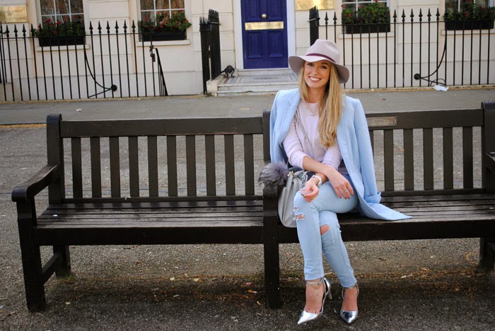 To add to this easy breezy Spring look, I’ve added my new favourite cashmere jumper (which you may recognise from my last OOTD post here!) which is from . It’s quite pricey but with knitwear you truly get what you pay for, and I think i’ll be getting lots of use out of this pastel pink pretty. Over the top, an oversized pastel blue coat just adds even more of a relaxed element to this look and I love the continuation of the blue tones from the jeans.