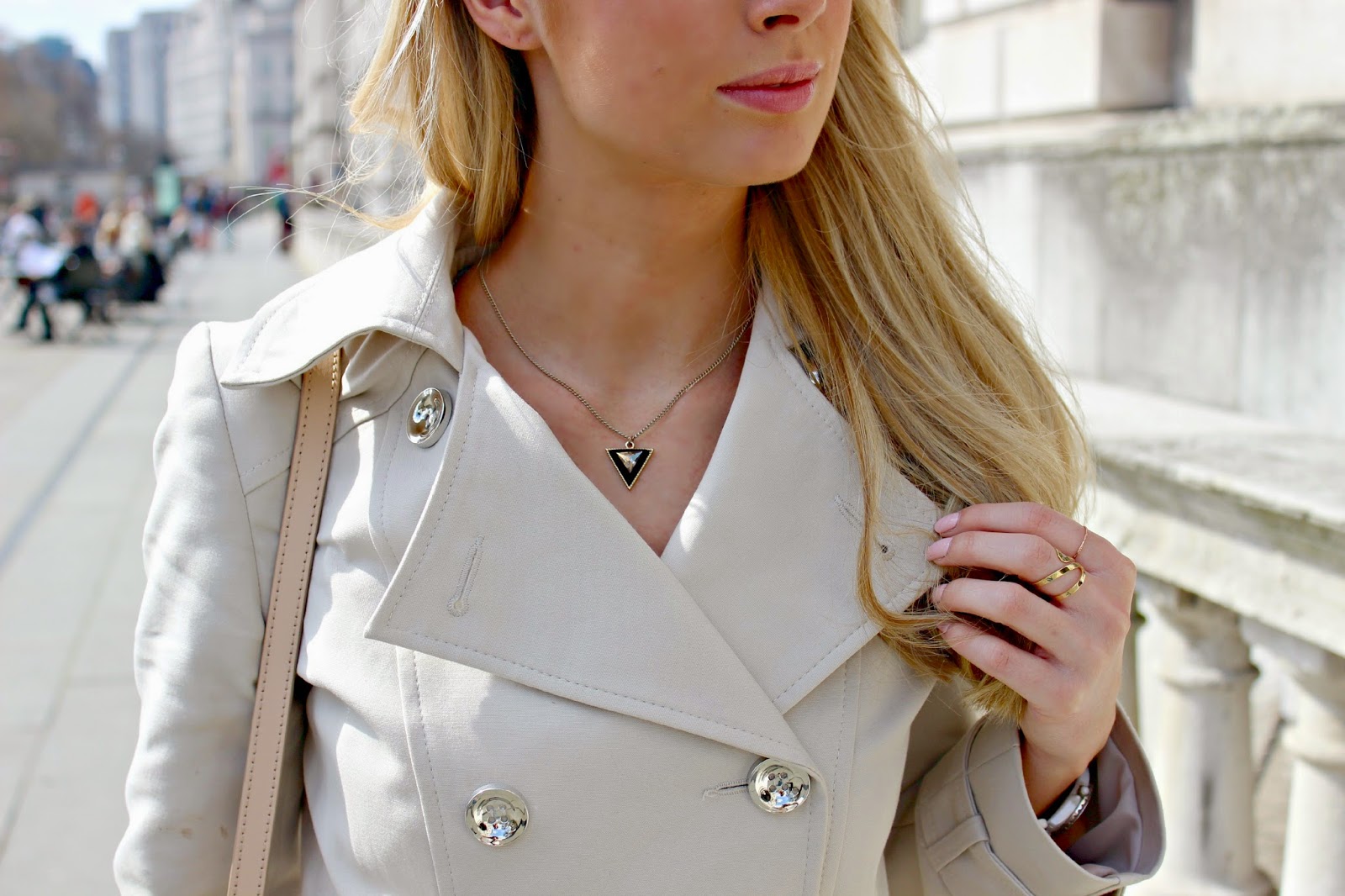 In my eyes, and as a Londoner for almost 6 years now, the answer is always a fabulous . Layering up this light outerwear piece always looks chic, and it gives you extra protection from the chill on those cooler days. I’ve been layering my trench (which looks far more expensive that it is!) over a very simple which is super for catching the sun when those rays do come out, and a pair of classic . White denim has to be the perfect Spring wardrobe transition piece. Pastel accessories add that compulsory pretty shade to the look, so I’ve matched my sunglasses, bag and in a soft pastel pink shade. Scroll down for more details and links!