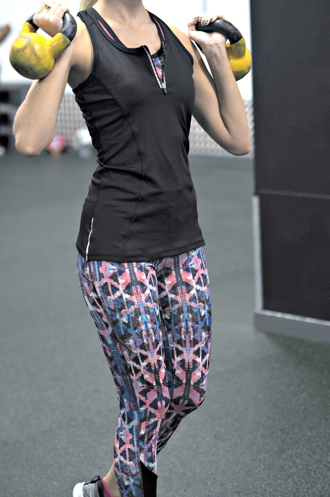My favourite combination is geometric print colourful vest top paired with a classic pair of black capri leggings, which have a hint of pink detailing on the hem as well as reflective strips. This fabulous pink fluoro jacket is just what I need for both safety and comfort when jogging on the common, especially as the nights draw in!
