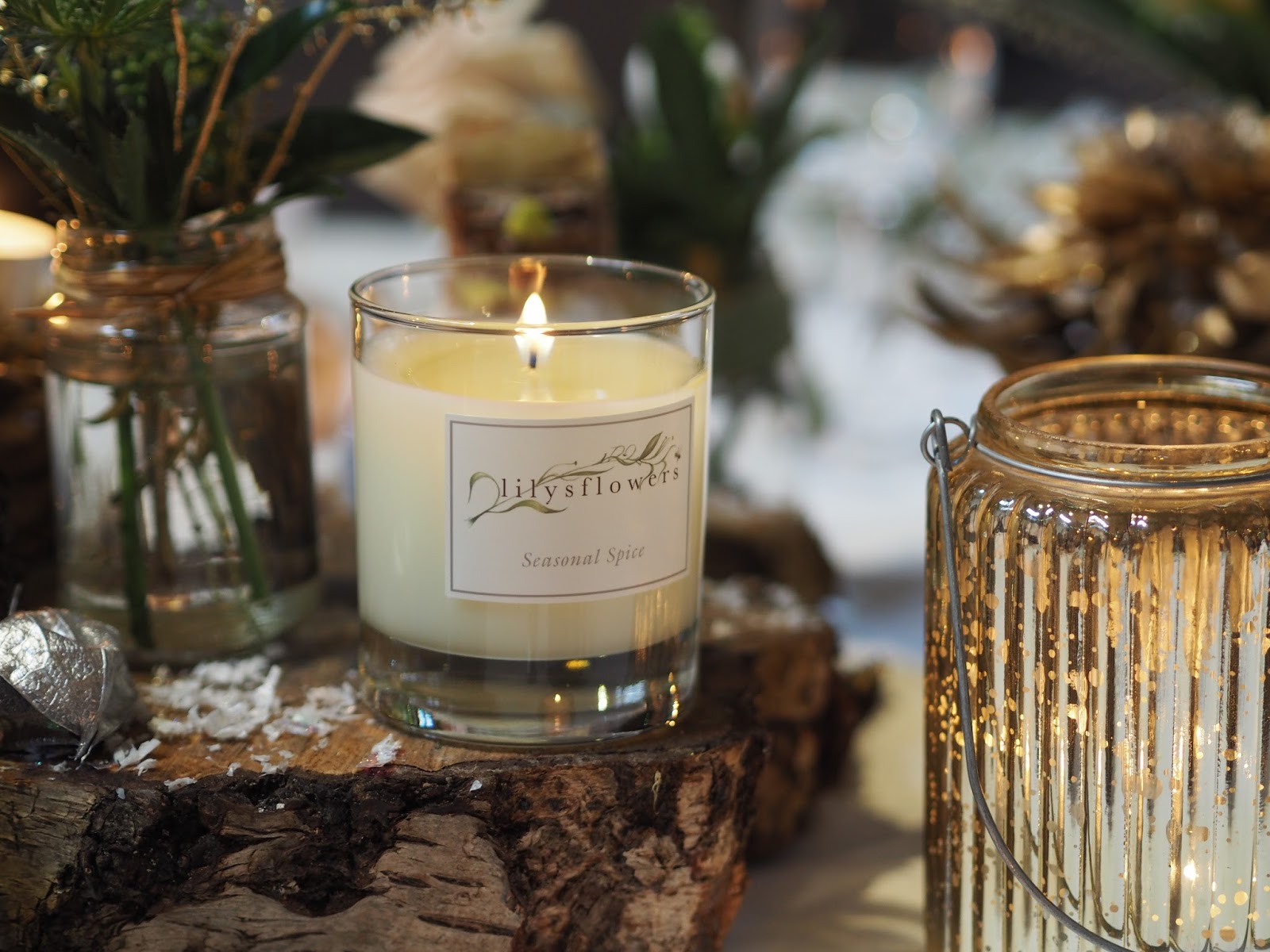 Candles add a new dimension to the setting, the flickering flame adds warmth and movement, as well as giving off a delicate festive scent. Mix in branded candles in their glass jars, with tiny tea lights lighting up their holders.