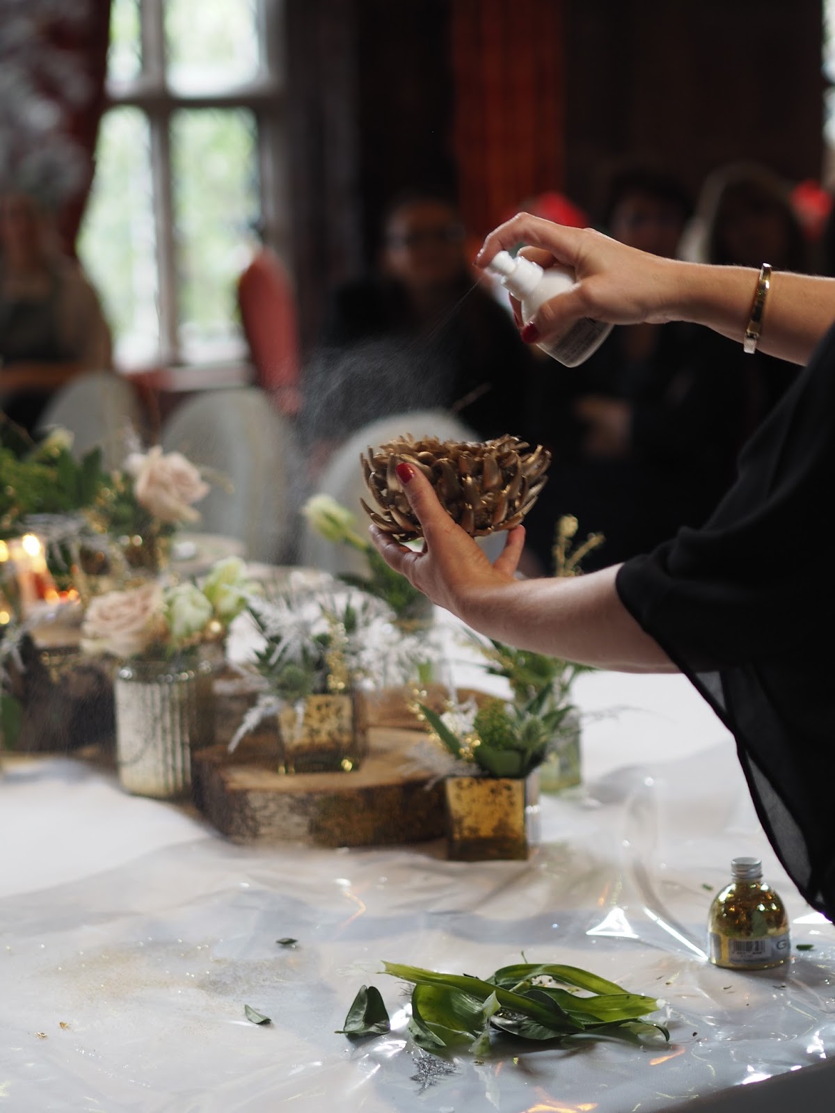 Last week, I was at the Great Fosters in Surrey for their Taste of Christmas event, and was inspired by the festive tablescape masterclass by Lilys Flowers; the florists created a beautiful, very organic, glittering table setting and gave us lots of tips for how to recreate a similar setting at home!